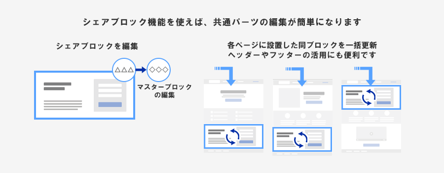 共通パーツの追加や編集の手間を削減するシェアブロック機能