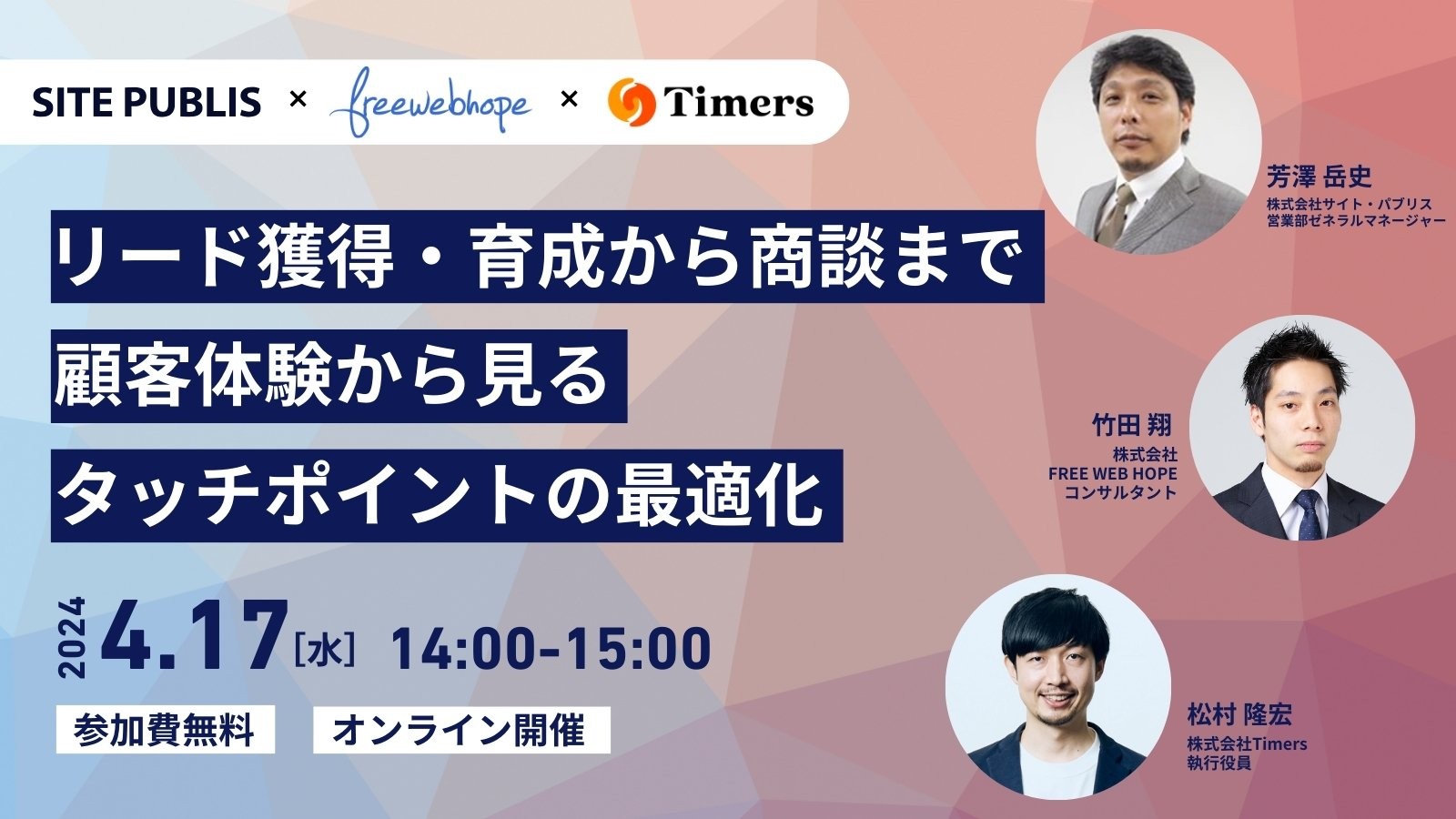 - 開催日時:2024/4/17(水)14:00~15:00